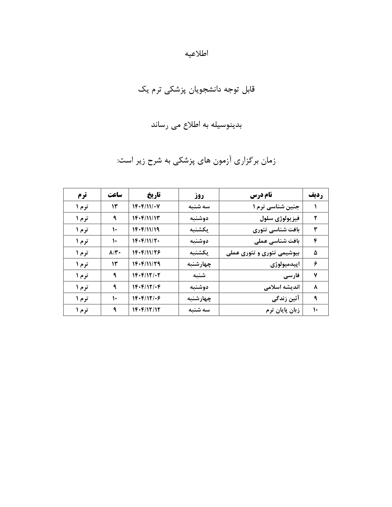 اطلاعیه اعلام تاریخ برگزاری آزمونهای پزشکی عمومی ترم یک اطلاعیه اعلام تاریخ برگزاری آزمونهای پزشکی عمومی ترم یک گروه خبری : آرشیو اخبار,اطلاعيه ها کد خبر : 165370 لینک کوتاه کلید واژه
