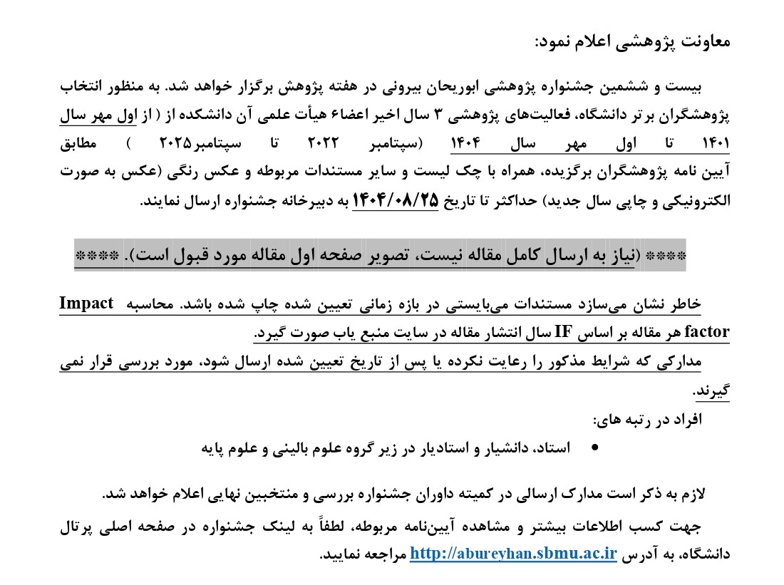 فراخوان بیست و ششمین جشنواره پژوهشی ابوریحان بیرونی
