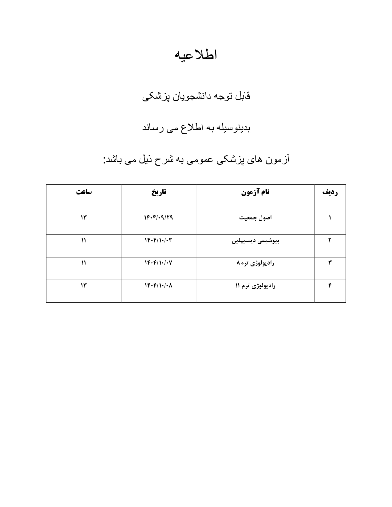 اطلاعیه تغییر تاریخ برخی از آزمون های پزشکی عمومی