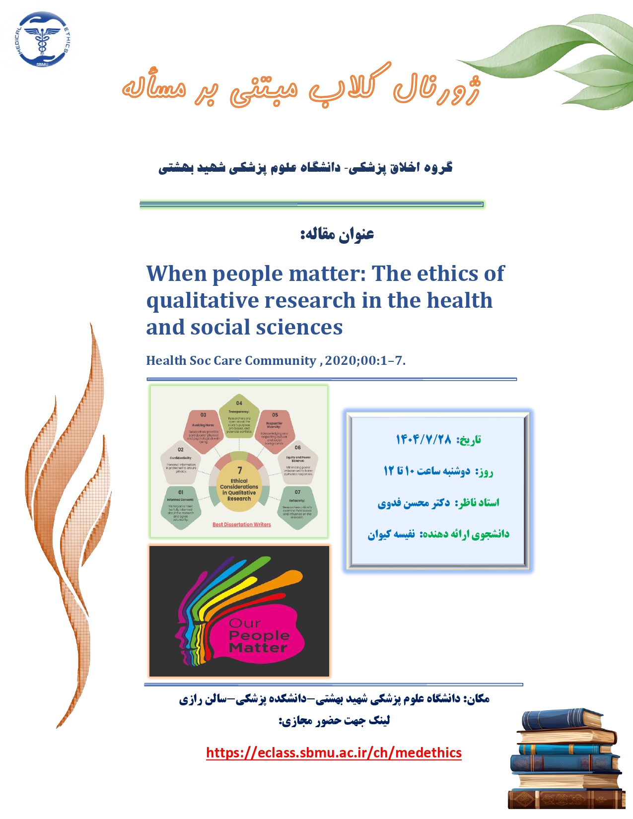 جلسه ژورنال کلاب تاریخ 1404/07/28 گروه اخلاق پزشکی