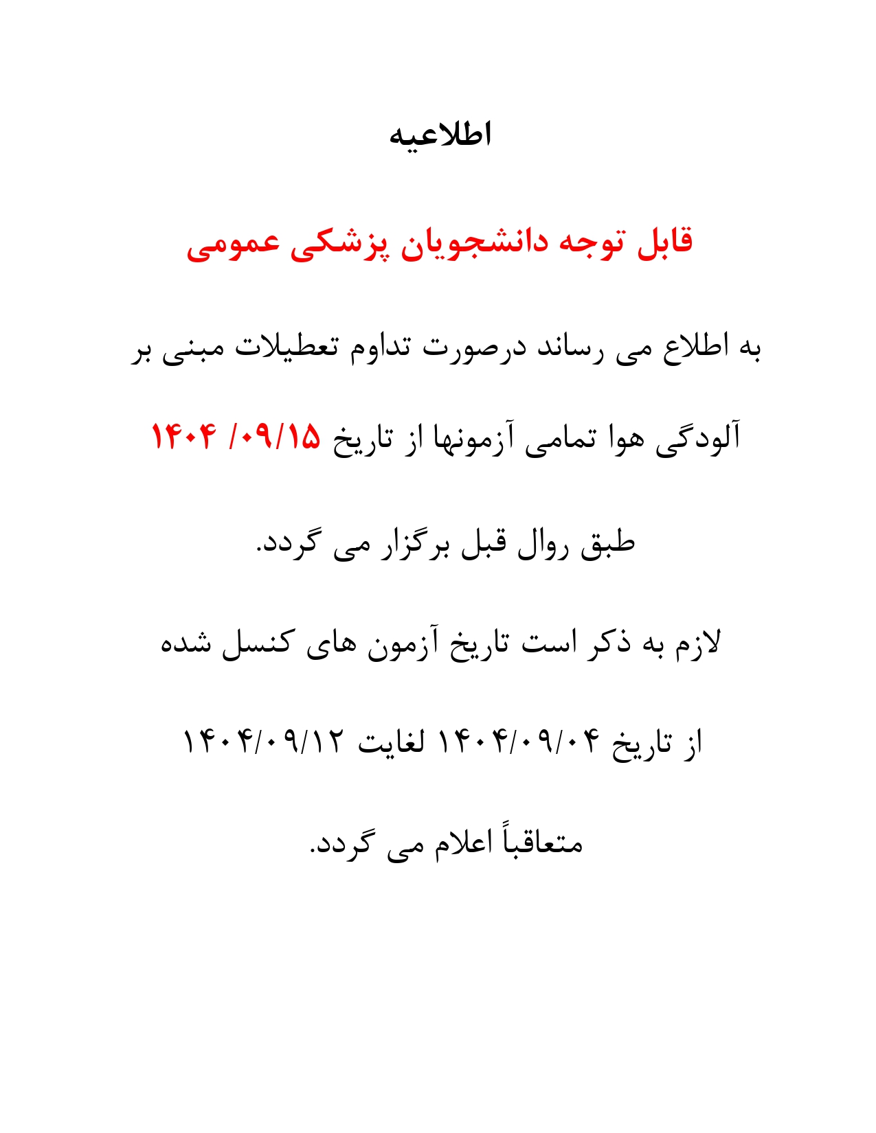 اطلاعیه آزمونها - قابل توجه دانشجویان پزشکی عمومی